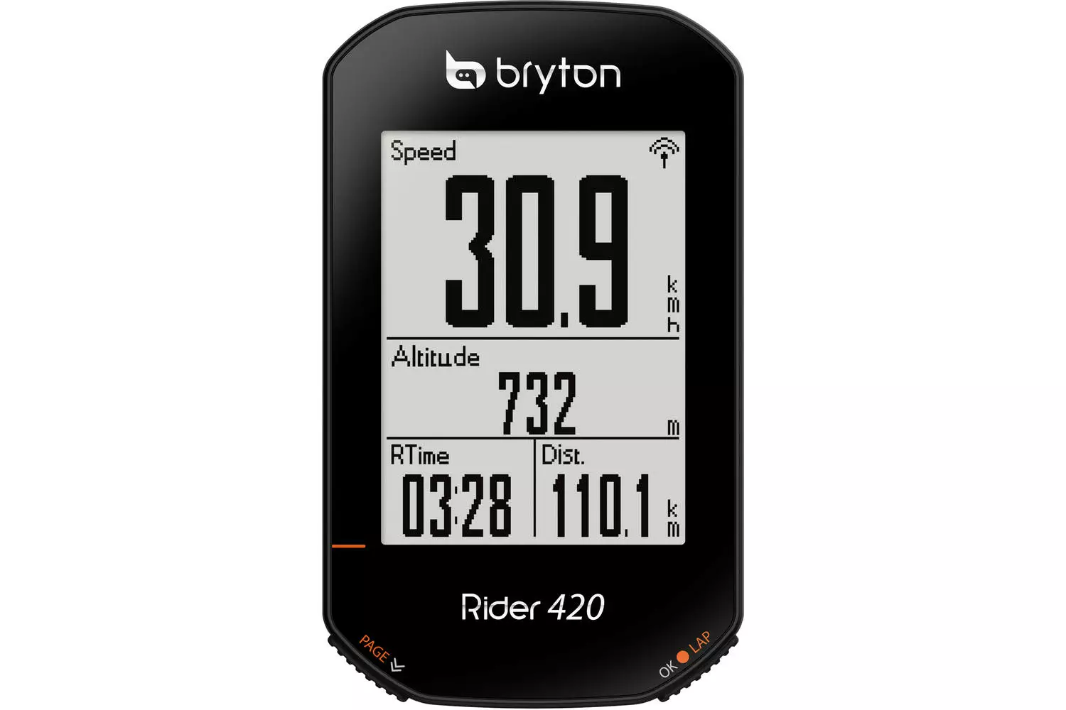 Rider 420E computeren har et GNSS-signal, som er med på å sikre en god forbindelse mellom computeren og satellitter. Dette gjør at computeren også kan holde seg tilkoblet selv om den brukes på tur ut i tett begrodd skog.