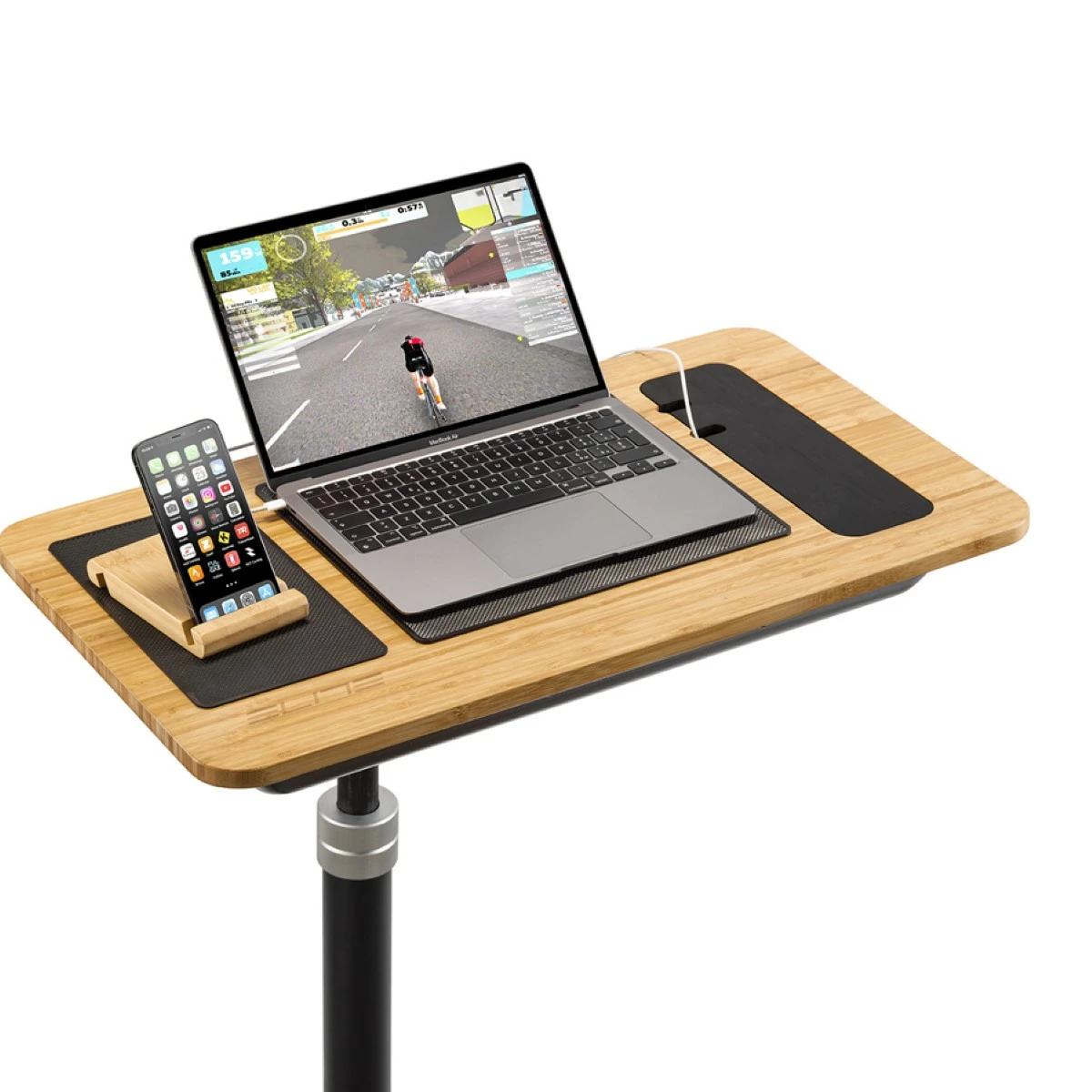 Treningspult fra Elite til hometrainer trening. Bordet står på tre ben med hjul, så det er enkelt å flytte rundt på. Den er også justerbar i høyden.