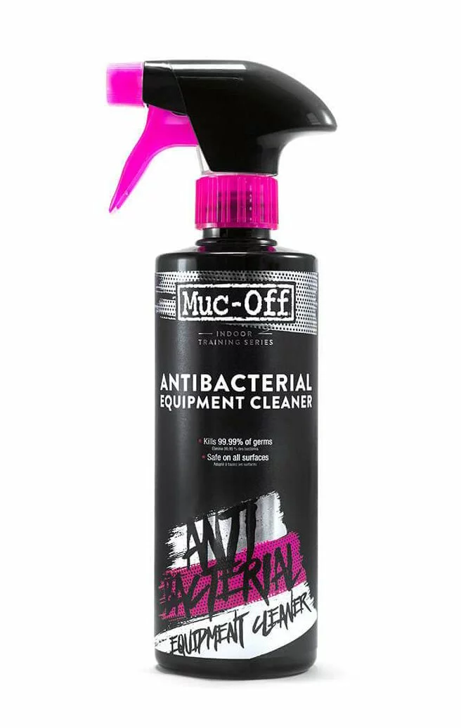 Muc-Off Antibacterial Equipment Cleaner er en effektiv rens til bruk på for eksempel din hometrainer/rulle eller andre innendørs trenings apparater