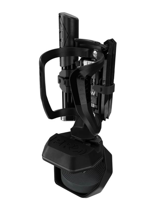 PROs nye smarte flaskeholder kombinerer en holder med integrert oppbevaring. Holderen gir deg mulighet for justerbar høyde og uttrekksretning. Det er mulig å bruke flere av PROs multiverktøy som passer i holderen. Det er også plass til minipumpe eller CO2 patron på den ene siden og på den andre siden er det plass til 2 dekkjern.