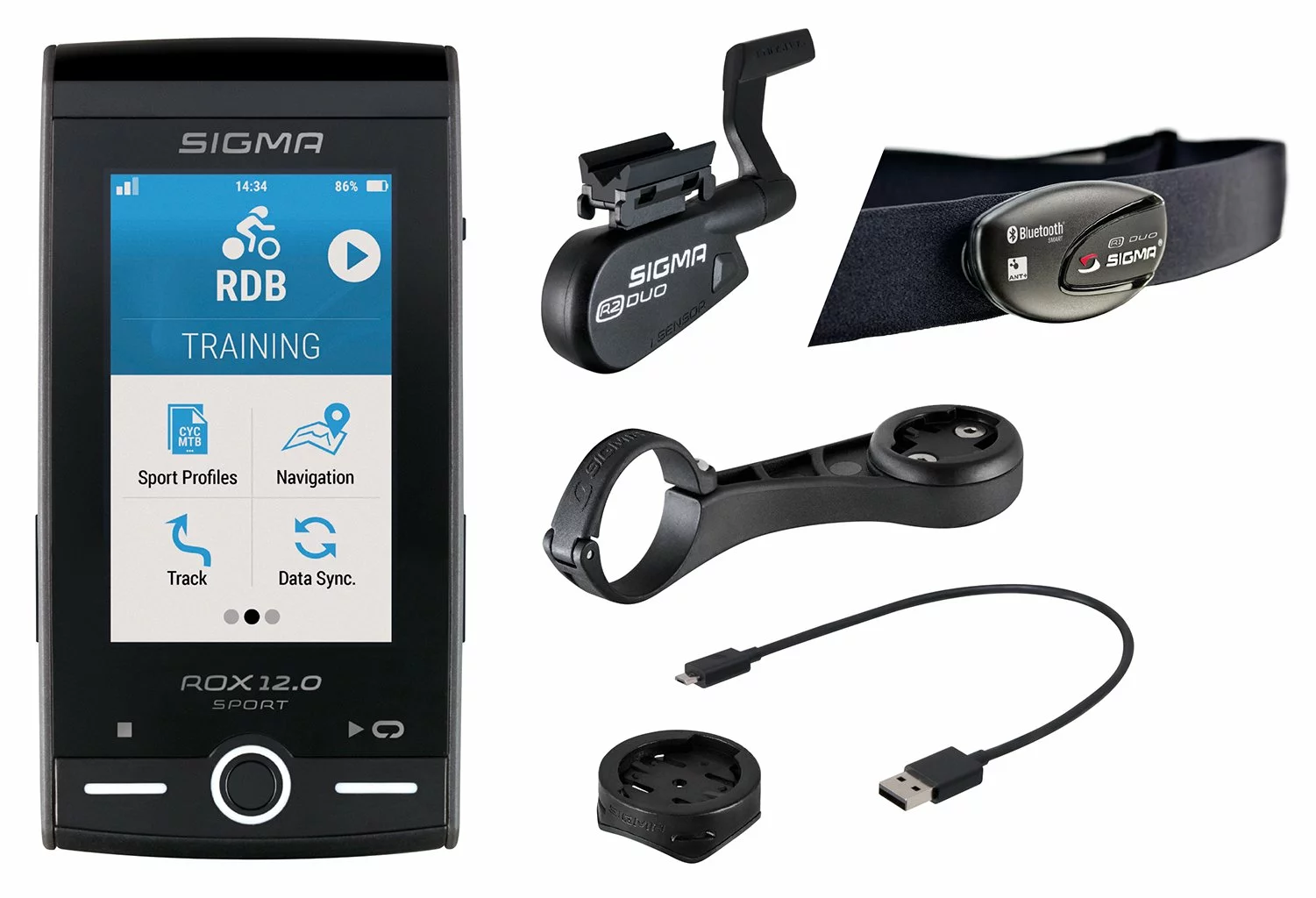 Med denne ROX 12.0 Sport Bundle får du ikke kun Sigmas Sykkelcomputer, men også kadence sensor og pulsbelte så du kan måle treningen din mye mer presist. Den nye ROX 12.0 Sport sykkelcomputeren gjør sykkelturen din mer behagelig og spennende. Med denne Sigma sykkelcomputeren får du et helt nytt kortbaseret navigasjonssytem, som hjelper deg med å finne de beste rutene, uansett hvor du har lyst til å sykle. ROX 12.0 Sport har en lang batterilevetid på opp til 16 timer. Sykkelcomputeren har en 3″ skjerm, som er transreflektiv og derfor enkel å lese av i direkte sollys.
